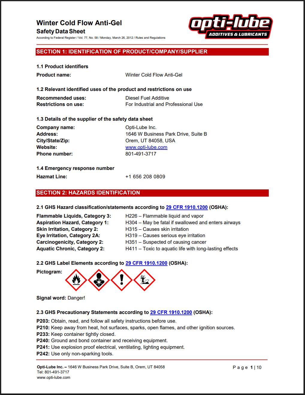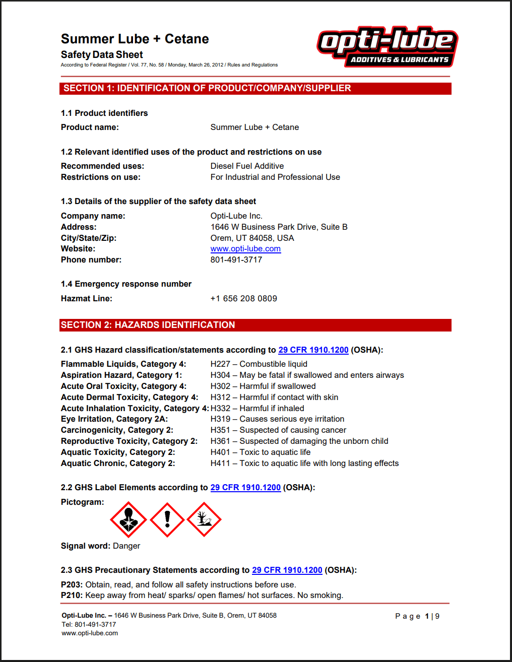 Summer Lube +Cetane SDS