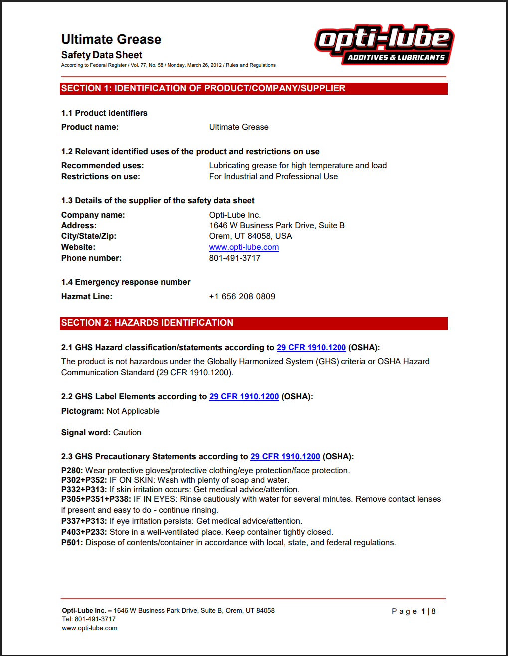 Ultimate Grease SDS