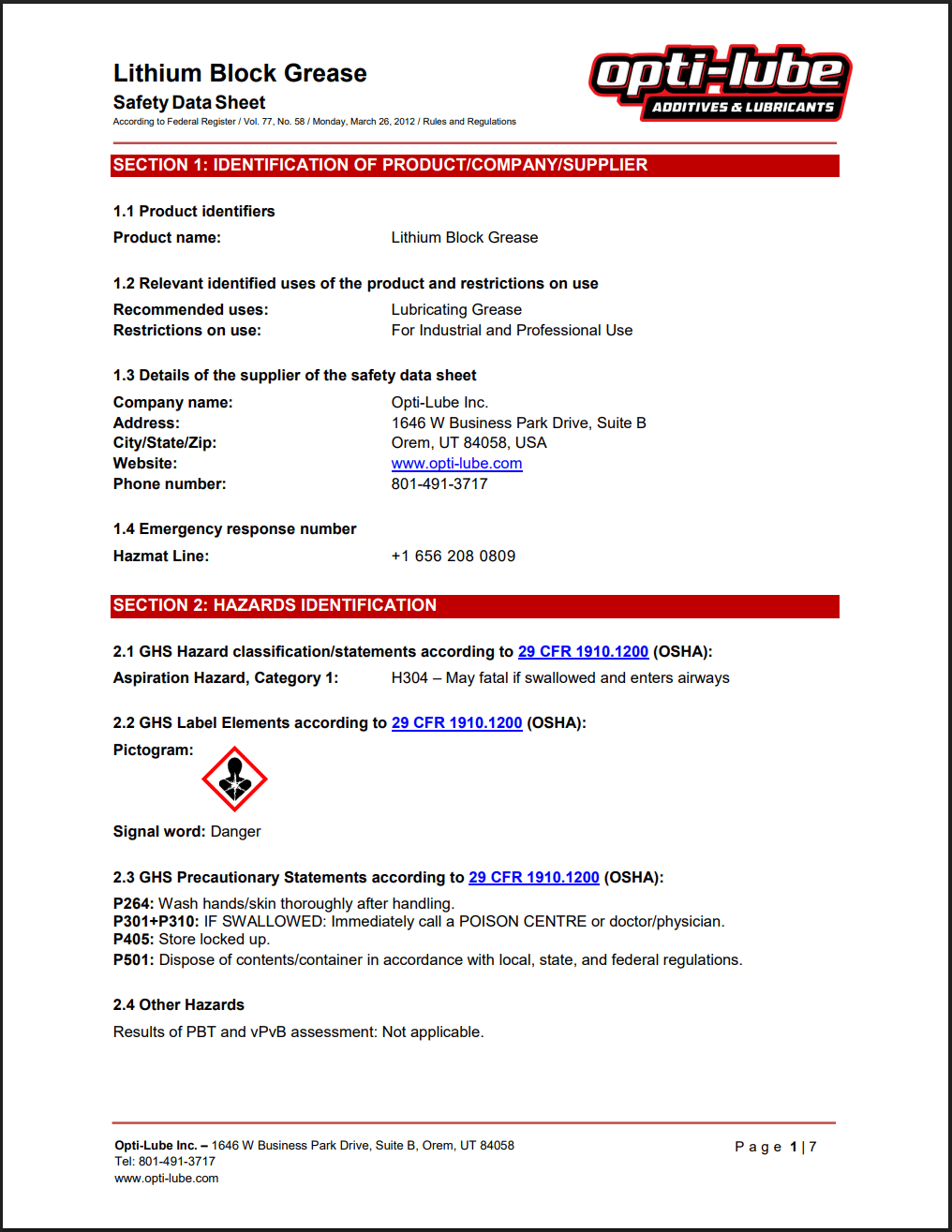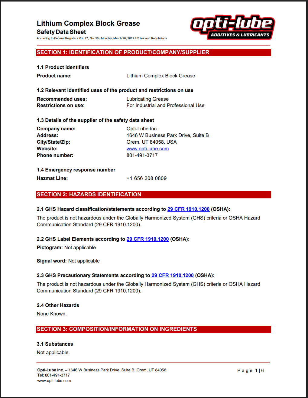 Lithium Complex Block Grease SDS