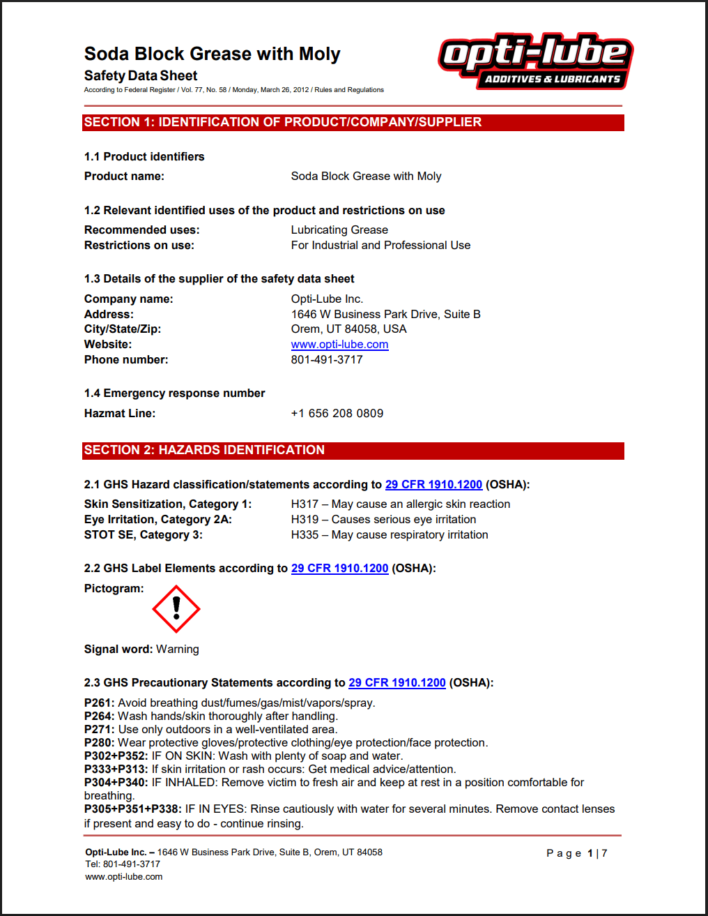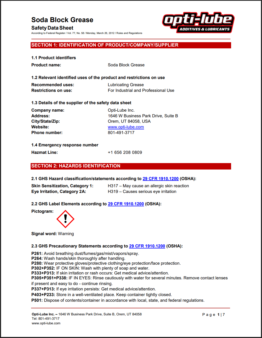 Soda Block Grease SDS