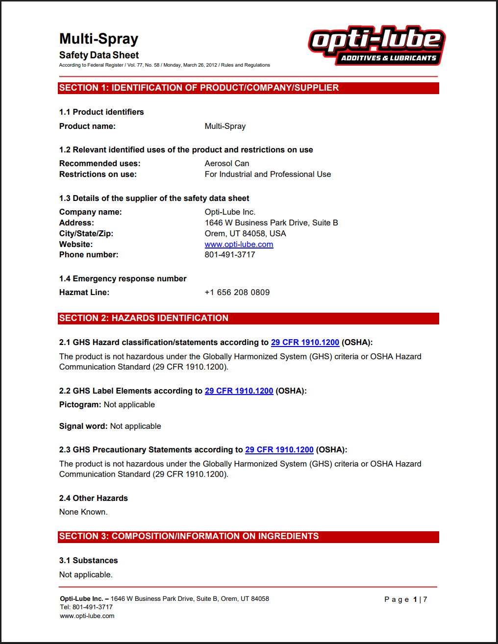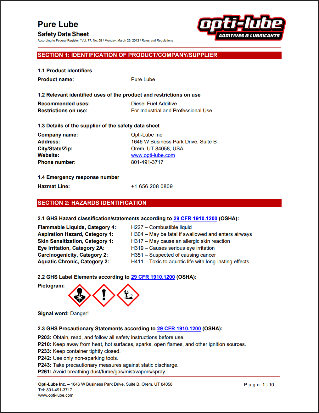 Pure Lube SDS