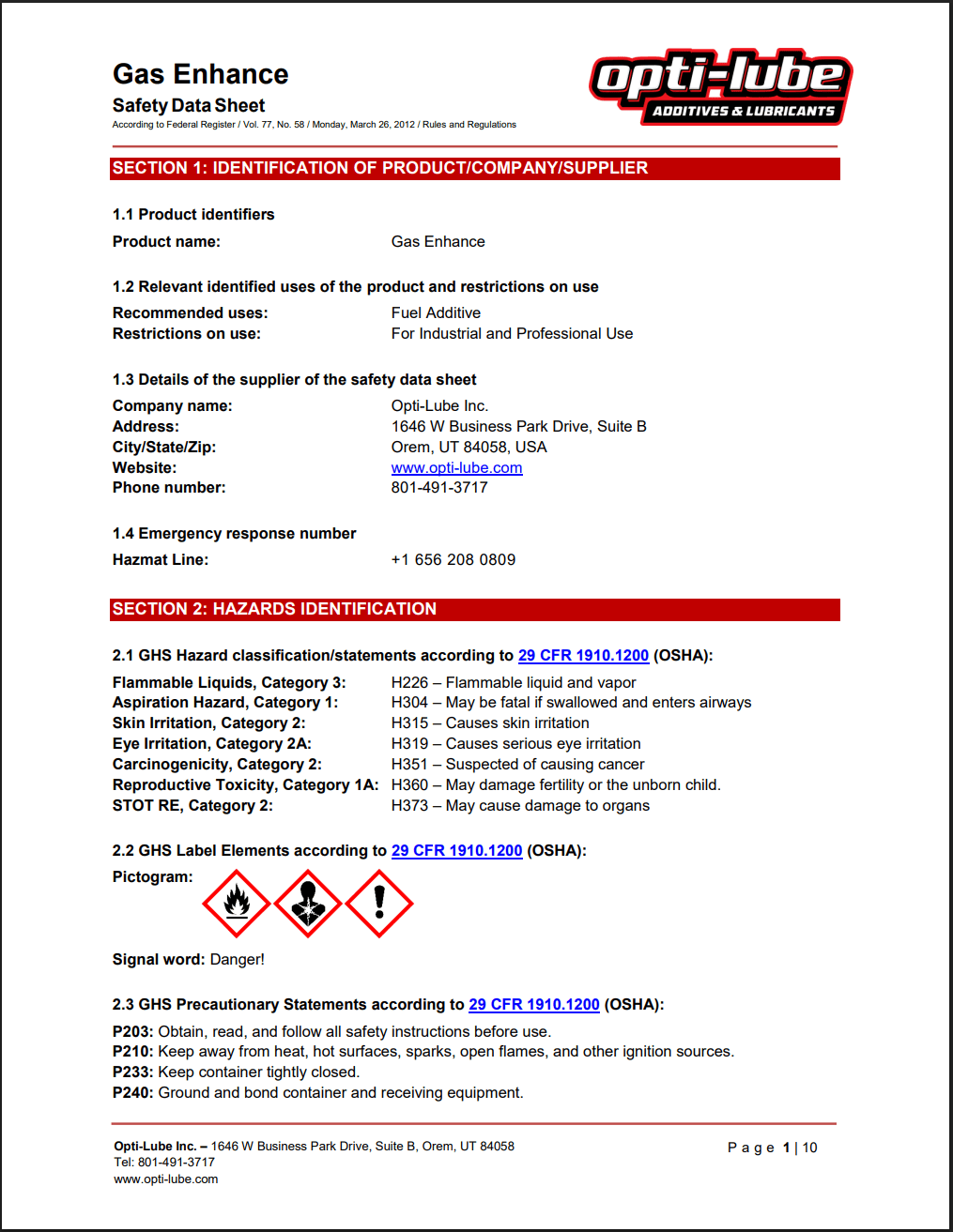 Gas Enhance SDS