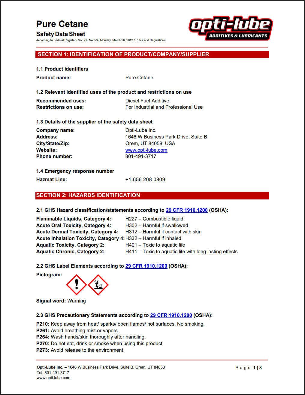 Pure Cetane SDS