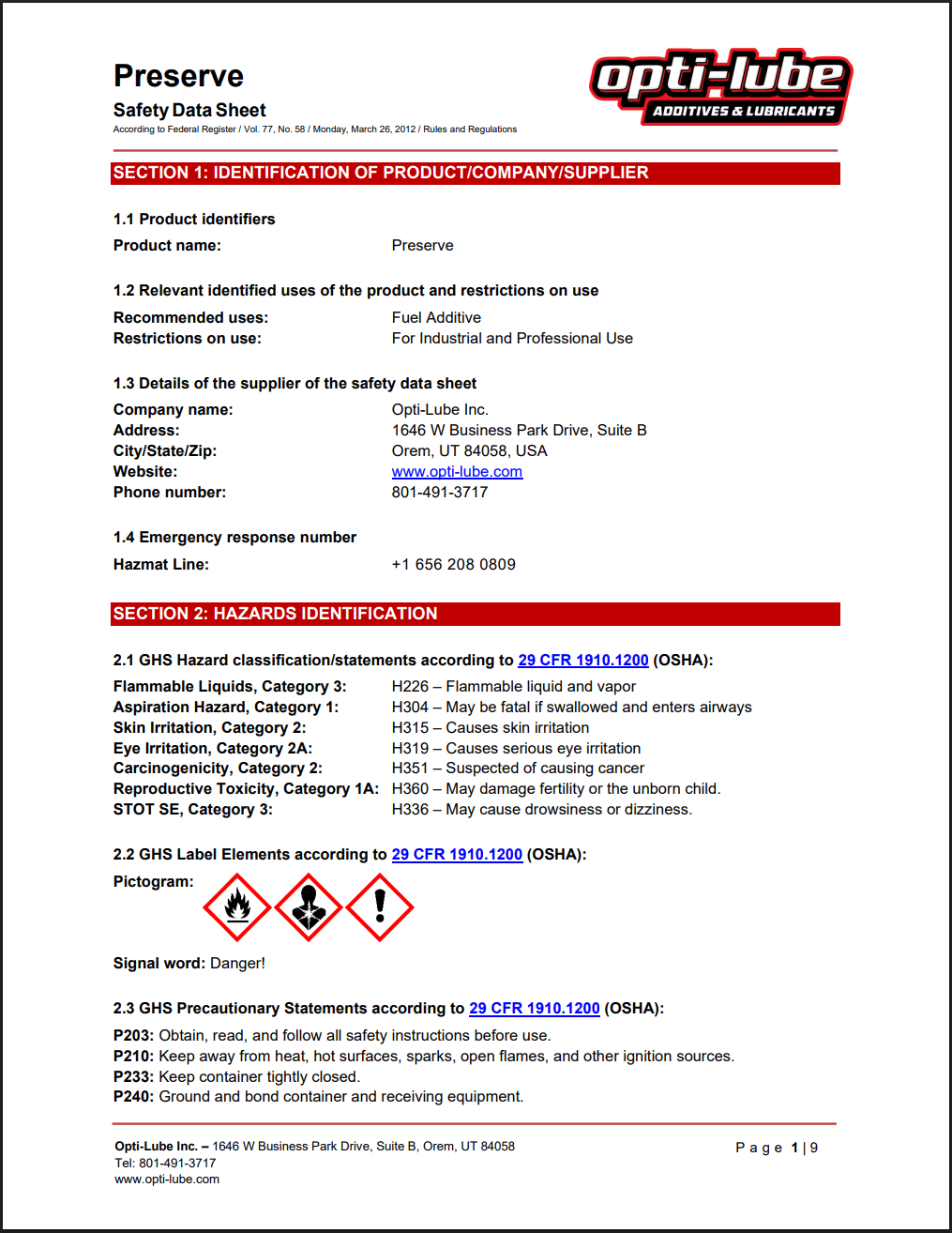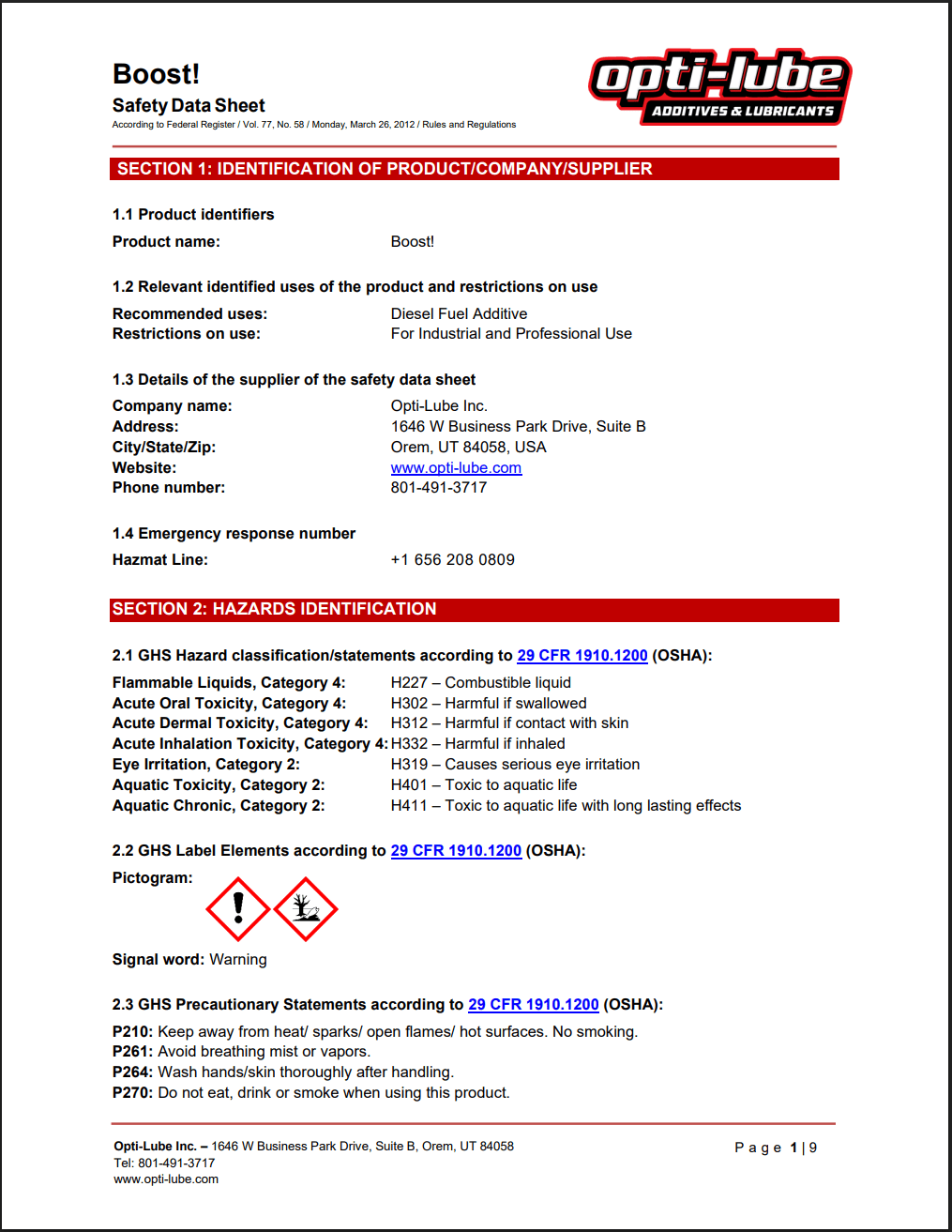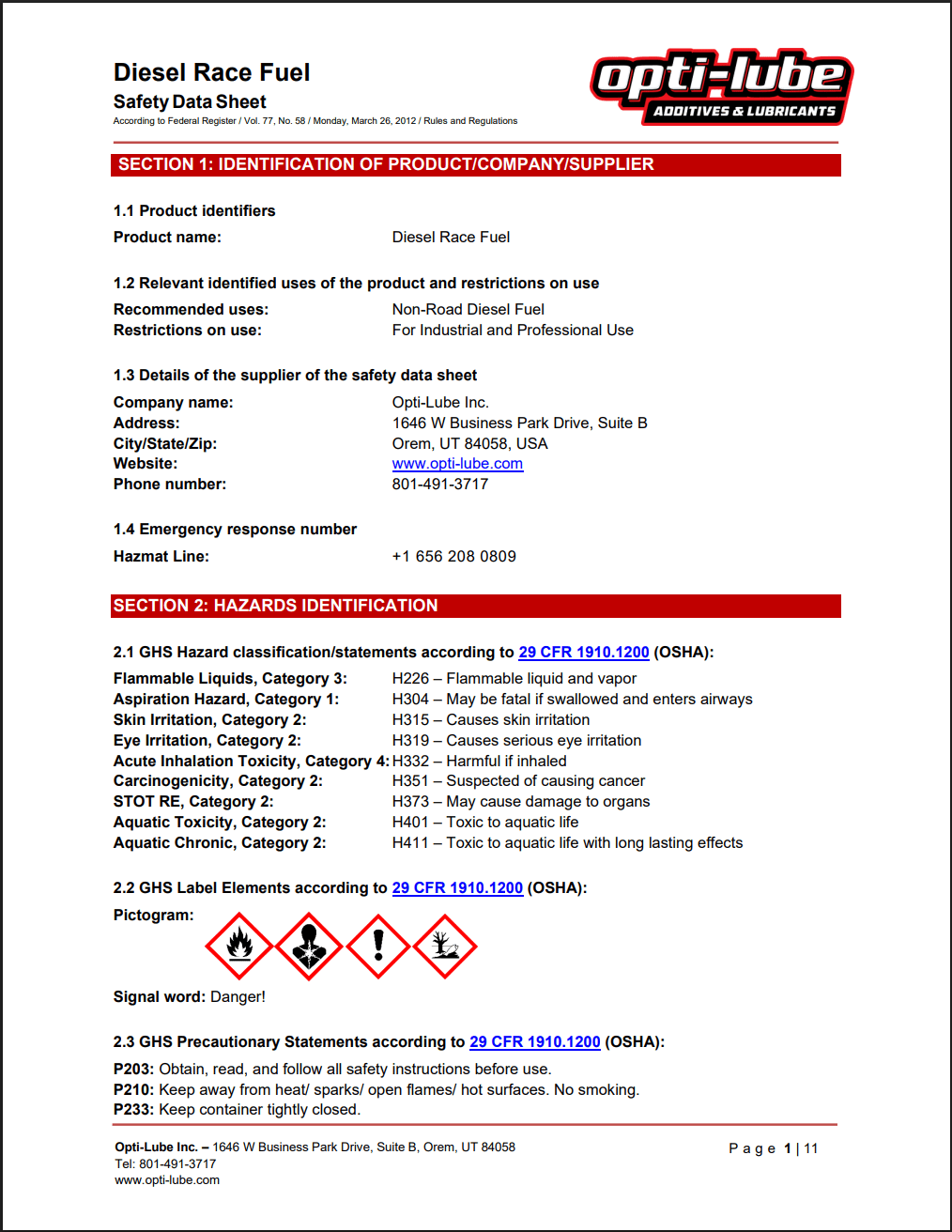 Diesel Race Fuel SDS