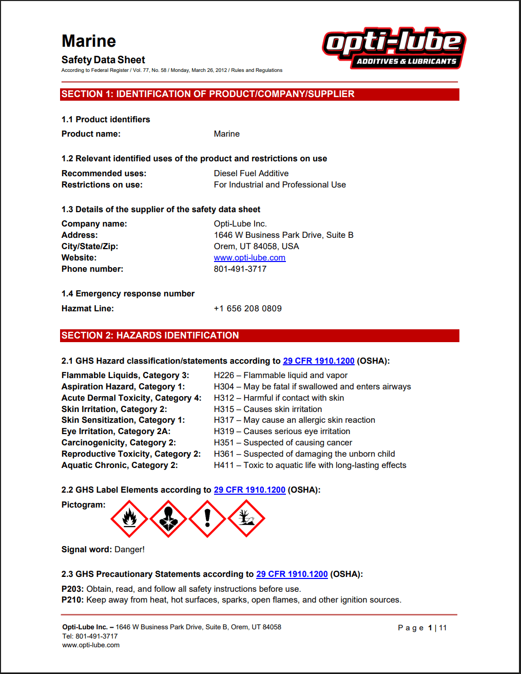Marine Diesel SDS