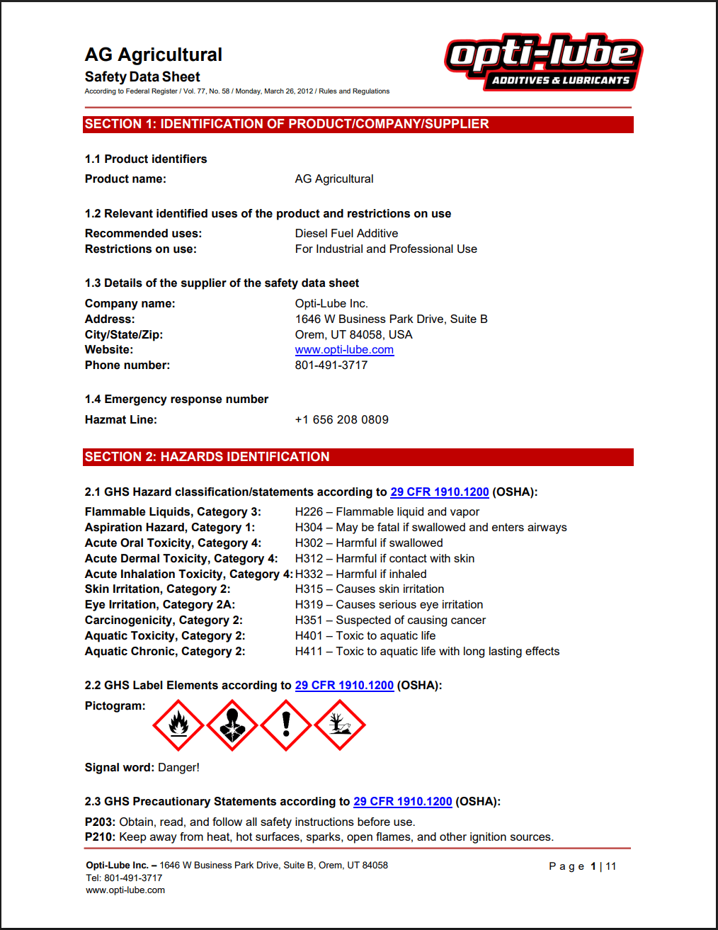 Ag Agricultural SDS